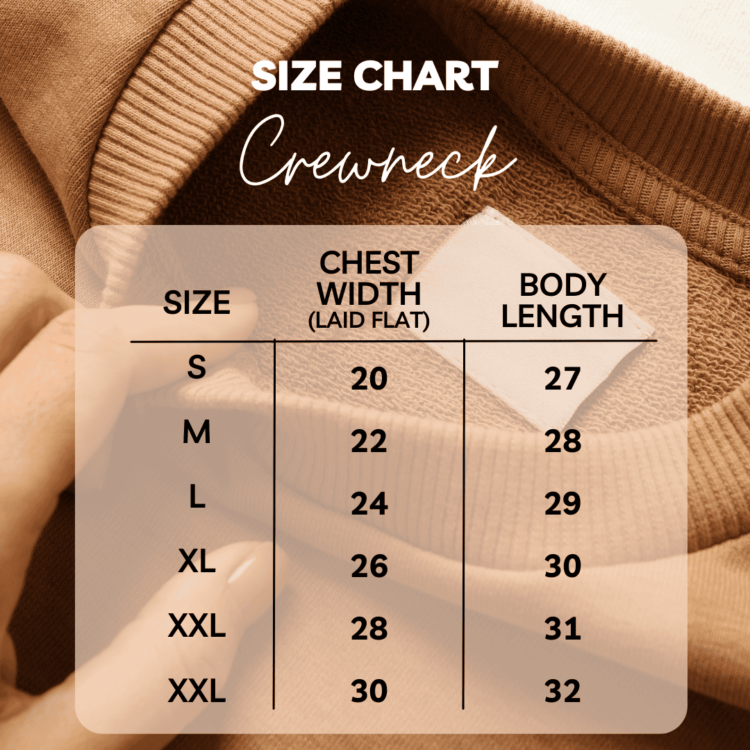 Our Drop of the Month Crew is in the colour black this month. Our Crewnecks are a Classic Fit and have Unisex Sizing. They are a soft and comfy 50/50 Cotton Polyester Blend.  Please check size chart to choose the best size for you.