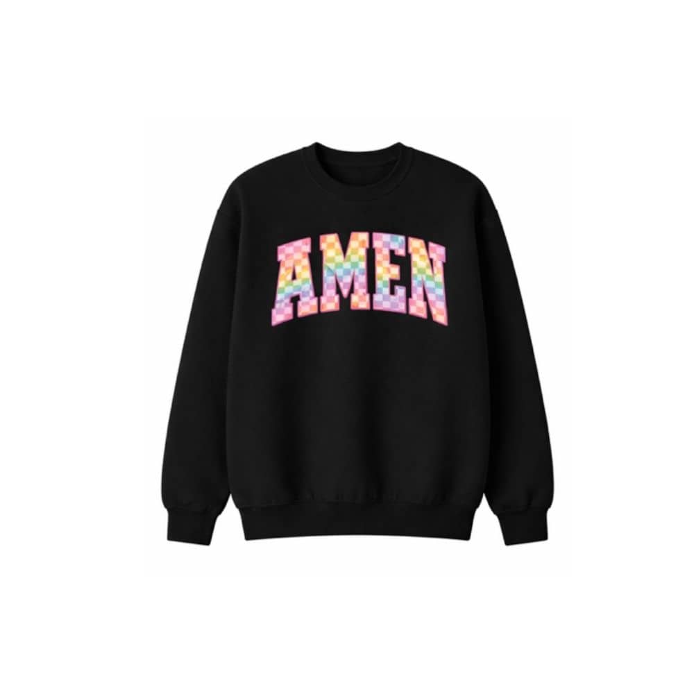Rainbow Checked Amen Crewneck